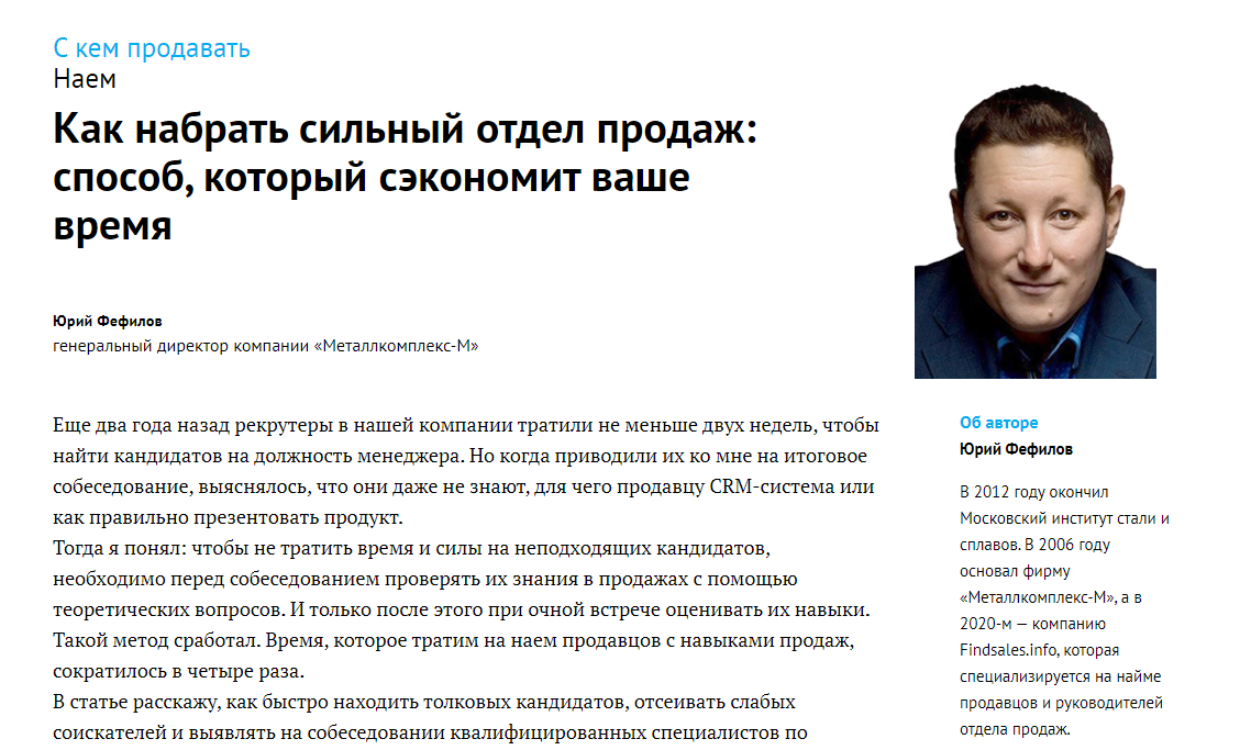 Я являюсь методологом по выстраиванию отделов продаж. Автором уникальной методики быстрого найма результативных менеджеров и руководителей отдела продаж.