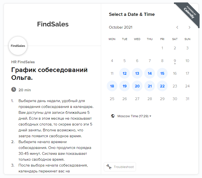 2) После оплаты попадешь на страницу календаря, для бронирования времени с экспертом. Выбери удобное время для сессии.